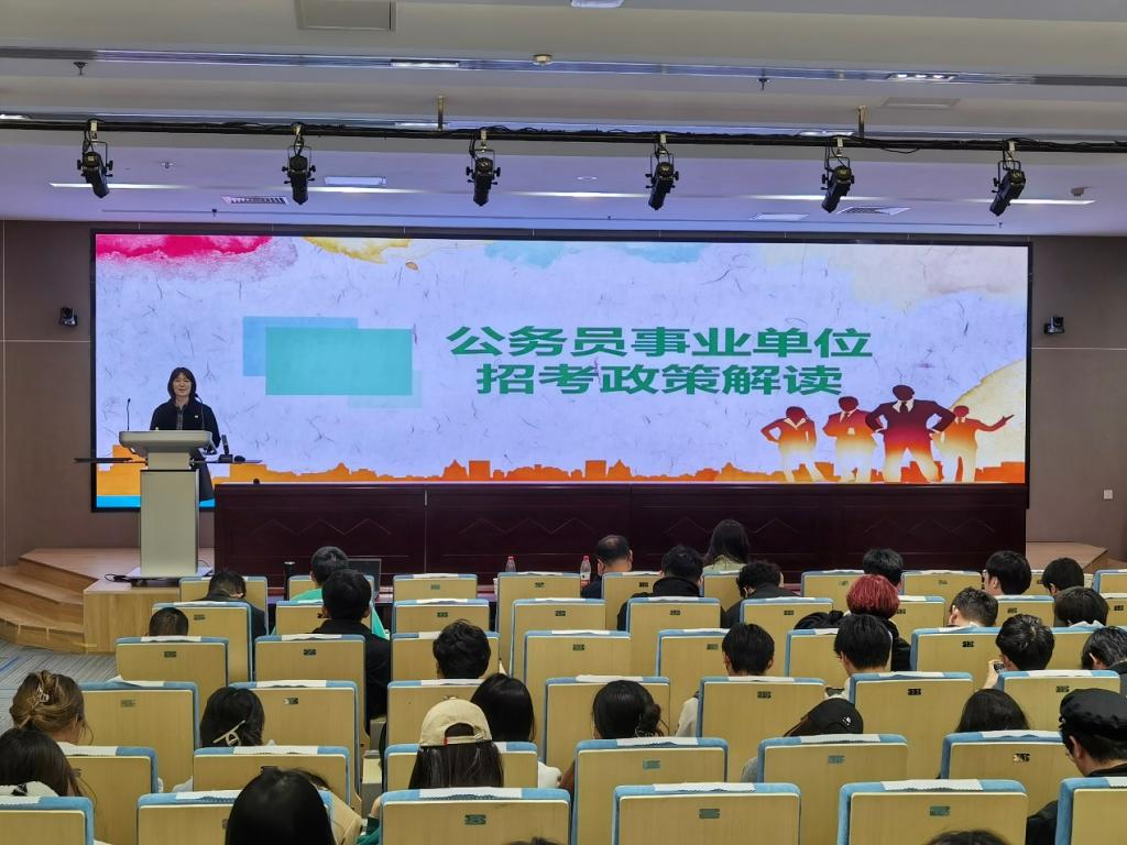 在就业政策宣讲会上,河东区人力资源和社会保障局副局长尚琳、河东区公共就业(人才)服务中心部长孙轶恺、中天人力中天人力毕业生服务部陶红辉、河东区公共就业(人才)服务中心副部长蔡玉欣分别就公务员事业单位招考和岗位选择、高校毕业生就业见习、毕业生档案、毕业生创业扶持等内容进行解读。来自304永利集团、新闻传播学院、文学院的在校生共计200余人聆听宣讲会。