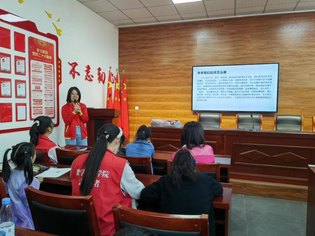 在活动中,天津市“青马”班学员、学院2020级数学与应用数学专业本科生李雅睿结合自身实际,以“牢记嘱托、实干奋进、善作善成,奋力谱写中国式现代化天津篇章”为主题,从坚定理想信念、勇于担当责任、牢守为民初心三个方面与潘楼村居民分享了自己的体会。