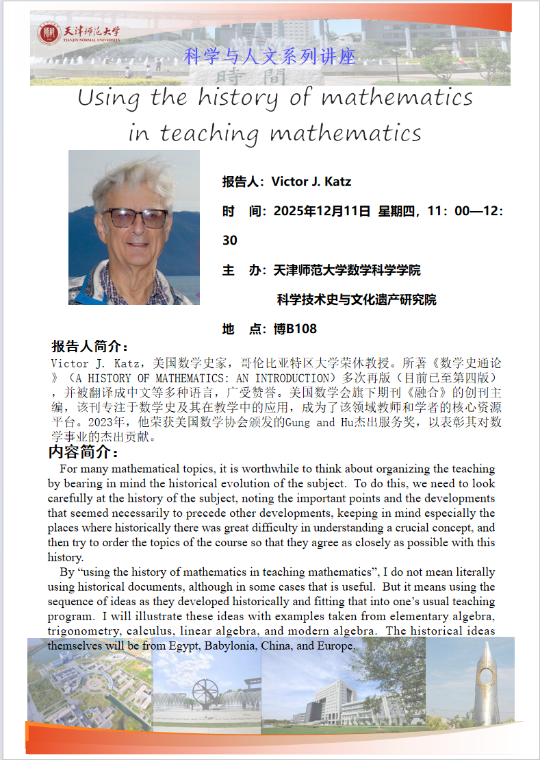 学术报告--Using the history of mathematics in teaching mathematics
